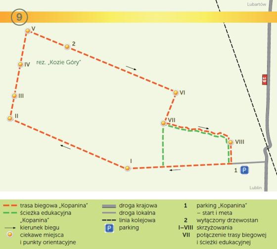 Planując przebieg trasy chcieliśmy urozmaicić amatorom aktywnego spędzania czasu wypoczynek na łonie natury o miejsca warte odwiedzenia, takie jak rezerwat Kozie Góry czy ścieżka dydaktyczna „Kopanina". Wszystkie odcinki prowadzą przez urokliwy kompleks Lasów Kozłowieckich. Pętla ma swój początek i koniec przy nowoczesnym Parkingu Leśnym "Kopanina". Więcej na temat przebiegu trasy i parkingu - tutaj.